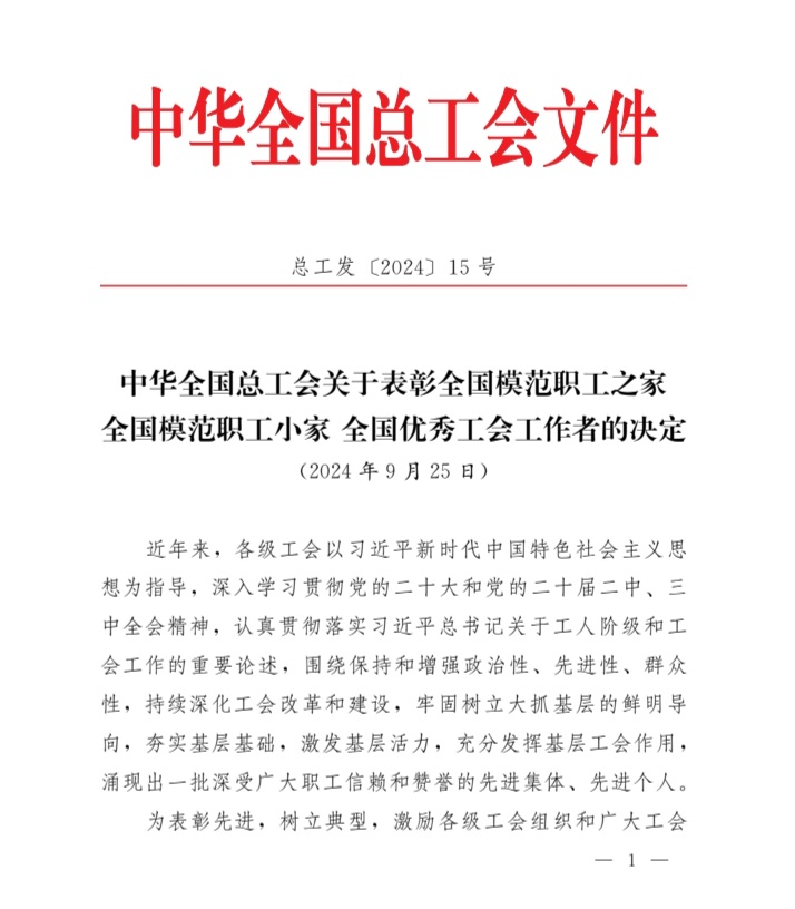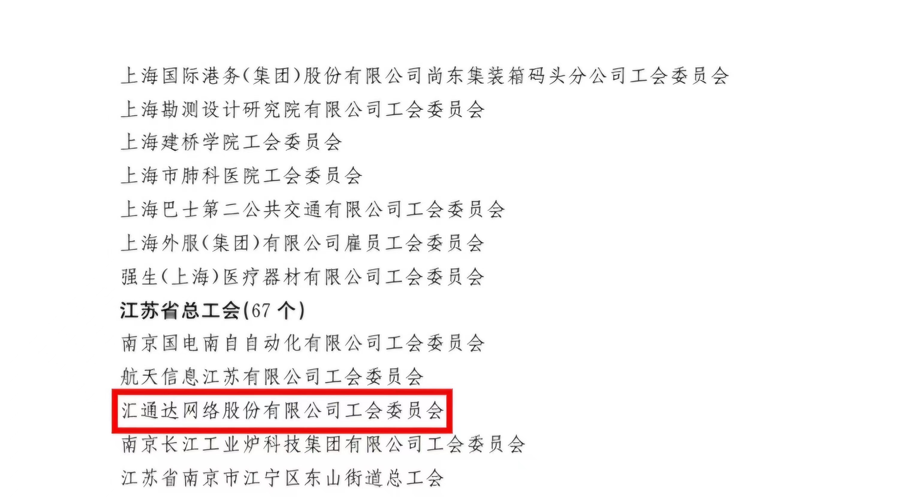 近日,中华全国总工会发布《关于表彰全国模范职工之家、全国模范职工小家 全国优秀工会工作者的决定》。我会会长单位汇通达网络股份有限公司、常务副会长单位江苏瑞祥科技集团的工会委员会被光荣授予“全国模范职工之家”称号。