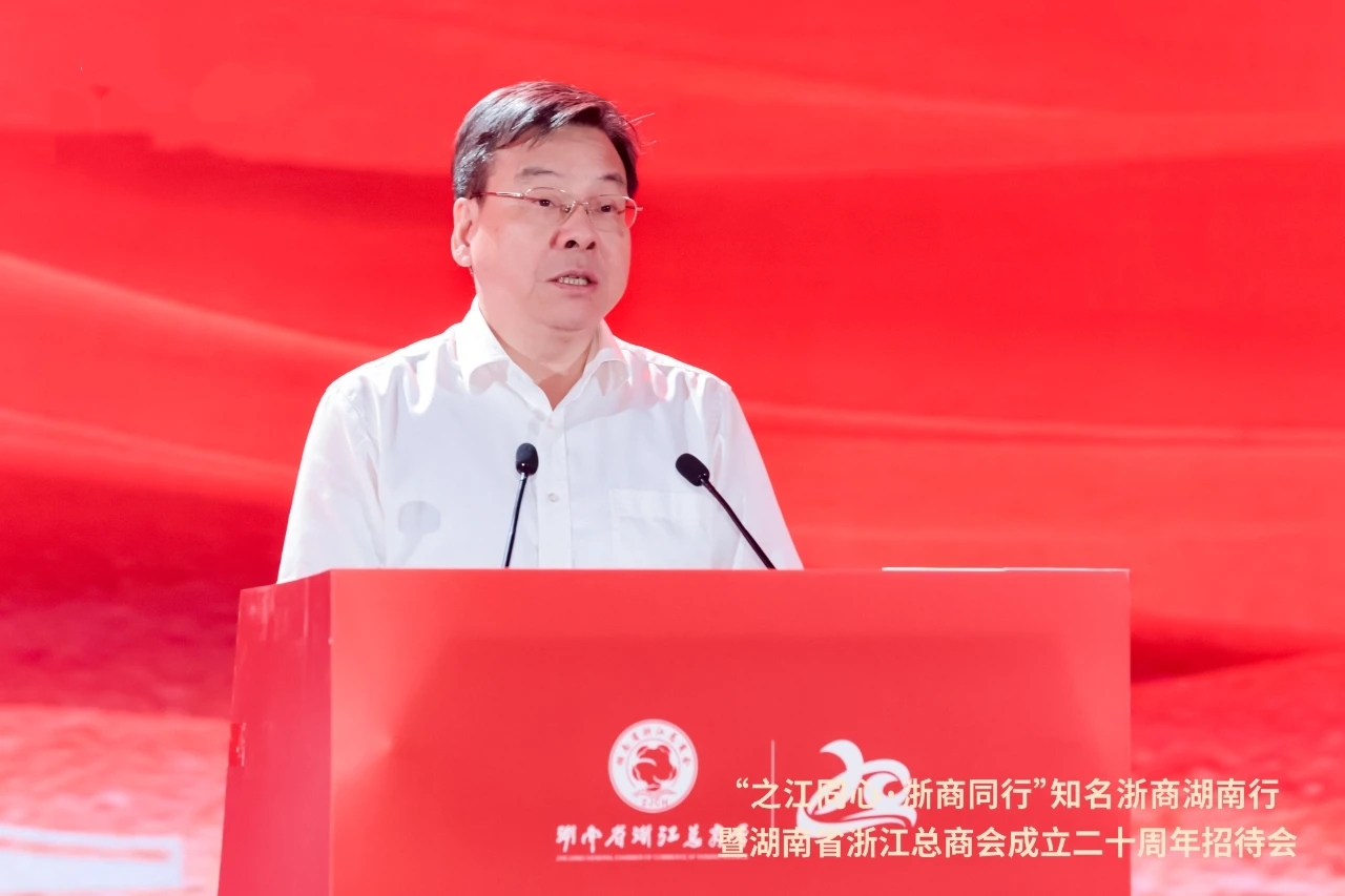 湖南省政协副主席、省工商联主席张健高度肯定了浙商在连接两地交流合作、参与湖南社会经济建设、助力慈善公益事业等方面取得的成绩,并对广大浙商提出了三点希望:一是当好两地合作的“领头雁”,充分发挥桥梁纽带作用,助力两地合作从“项目对接”走向“生态共建”;二是勇当创新发展的“排头兵”,以科技为支撑,在发展新质生产力的赛道上跑出“浙商加速度”;三是持续擦亮浙商“金字招牌”,加强自身建设,提升服务效能,为促进“两个健康”再立新功。