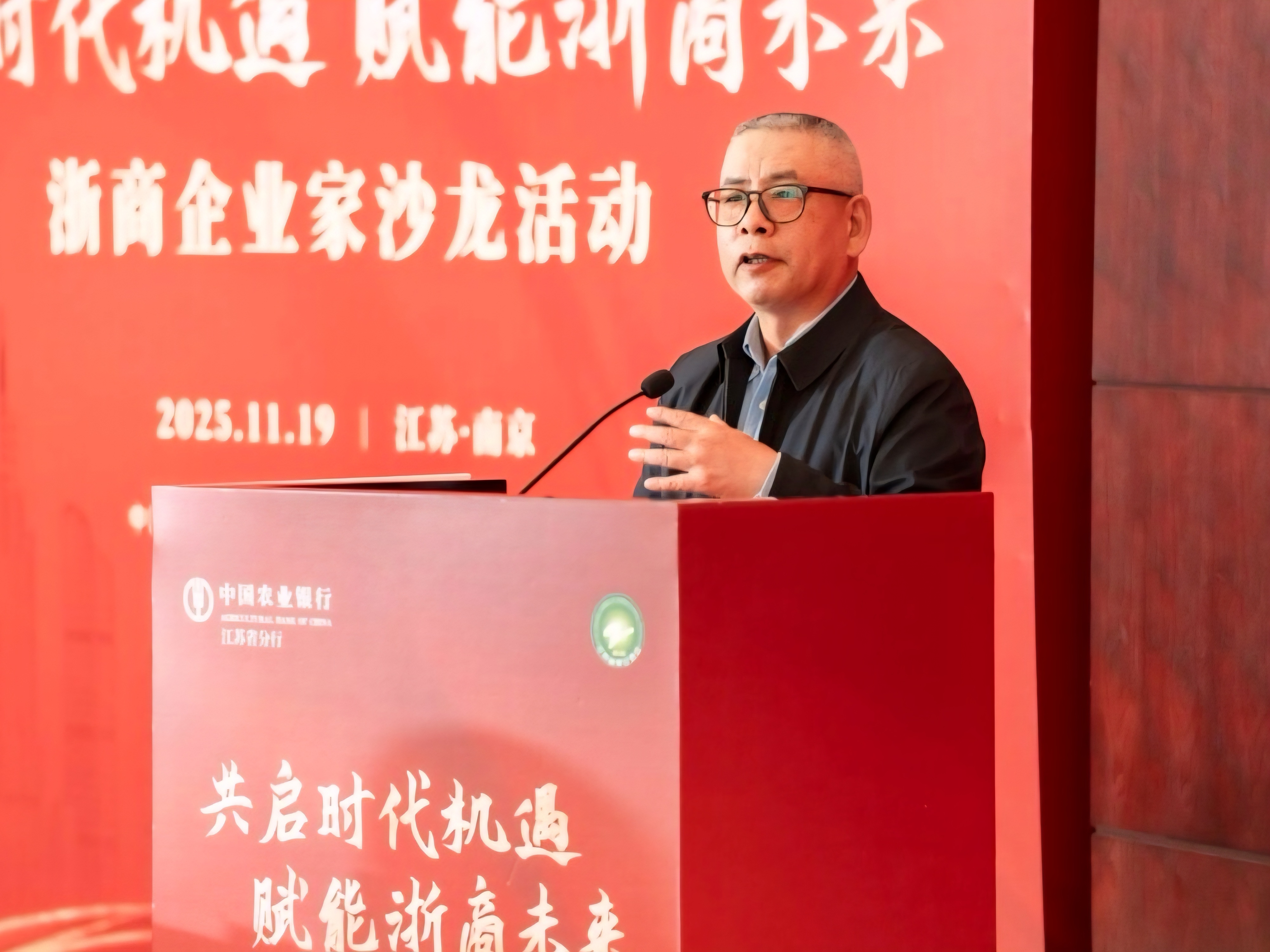 为深入贯彻党的二十届四中全会精神及中央关于促进民营经济发展壮大的一系列决策部署,共同服务在苏浙商把握中国式现代化新征程中的战略机遇,11月19日下午,由 与中国农业银行江苏省分行联合主办的“共启时代机遇 赋能浙商未来”浙商企业家沙龙活动在南京紫峰大厦成功举行。